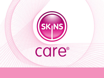SKINS advertisement with 'Pleasure Now. Pay Later.' text and logos on a blue background