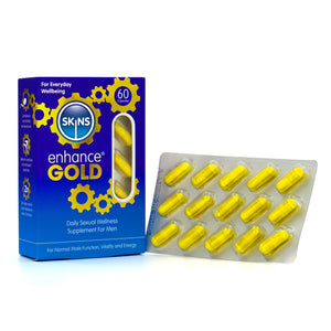 Introducing the all-new Skins Enhance® Gold, a powerful daily sexual wellness supplement for men, supporting normal male function, vitality, and energy. The all-natural men’s sexual wellness supplements feature a proprietary formula made from 100% natural ingredients.