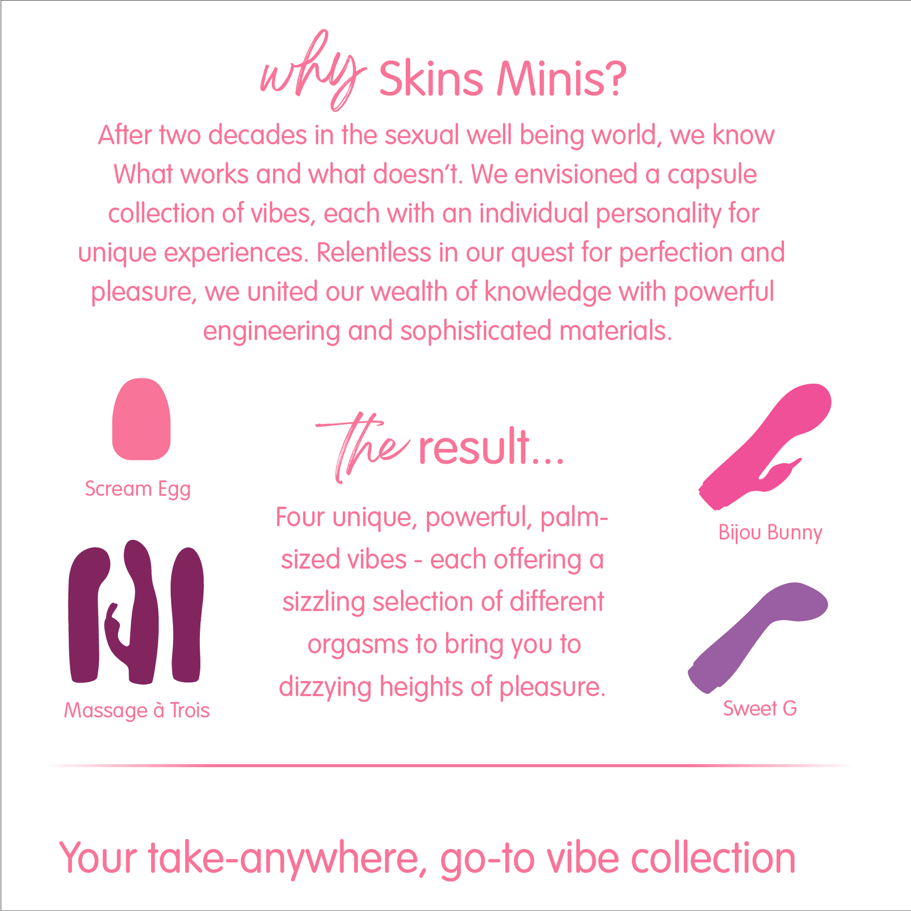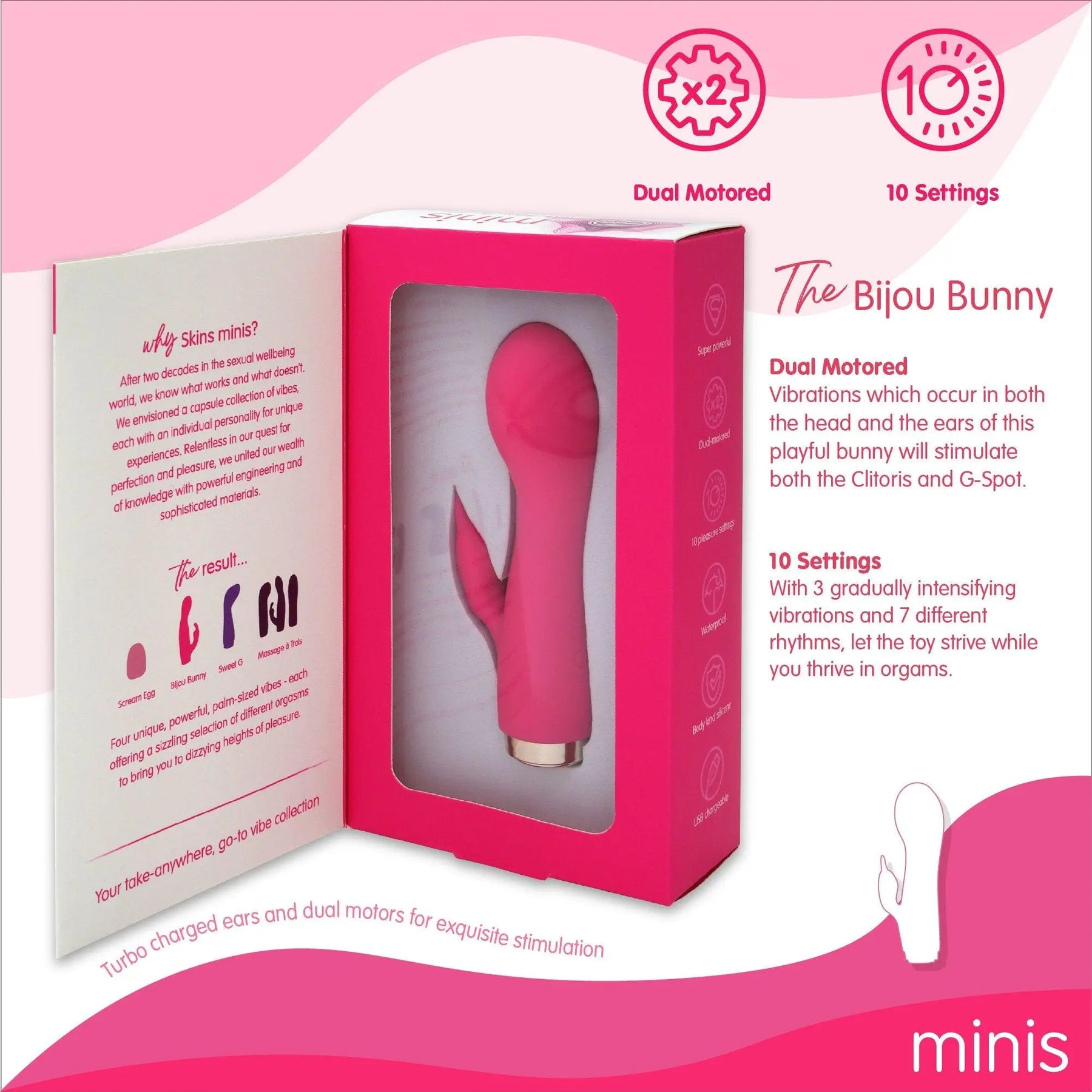 Take your vibe anywhere with the Bijou Bunny rabbit sex toy, part of the adorable Skins Minis collection. With its vibrant colour and teasing ears, this little pink rabbit sex toy will never fail to bring a smile to your face.